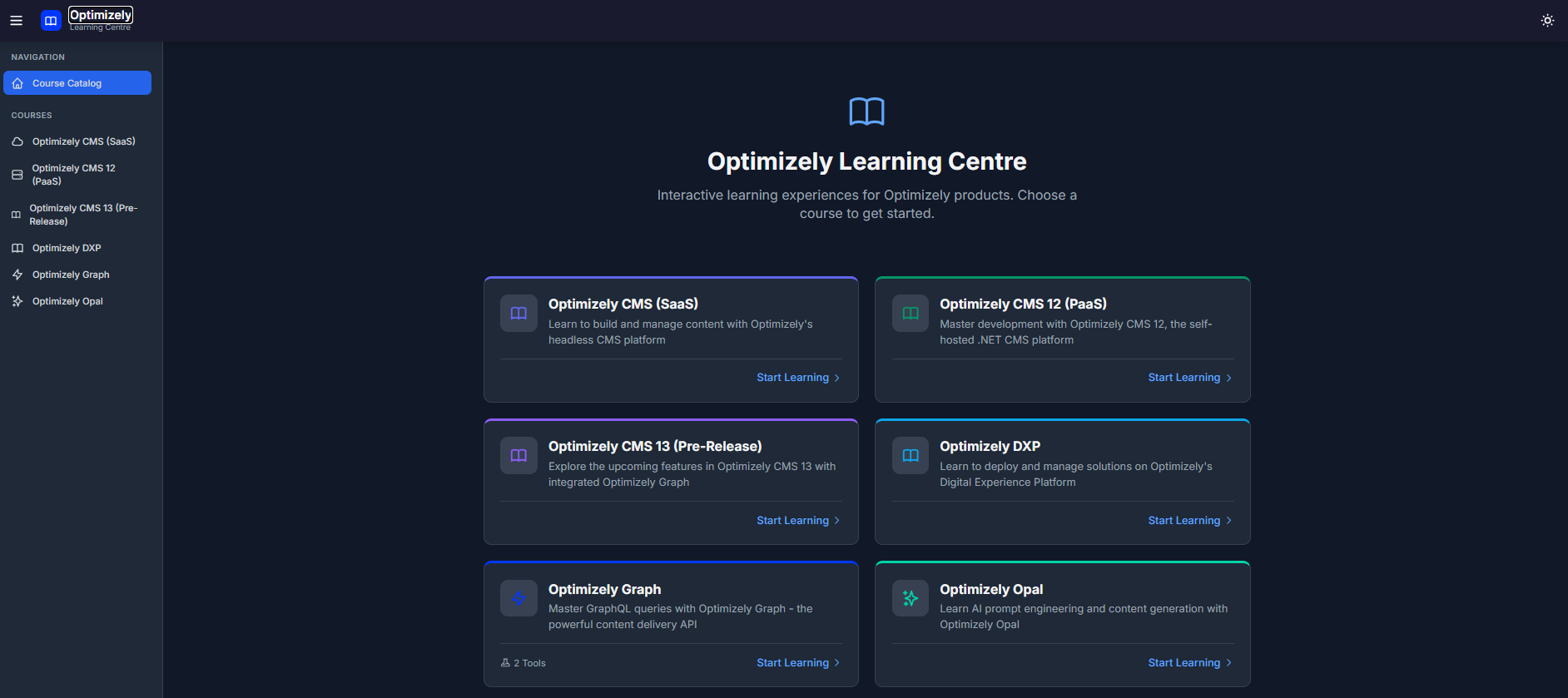That's exactly why I built the Optimizely Learning Centre — a free, interactive platform designed to help you learn Optimizely products at your own pace, with hands-on practice built right in.