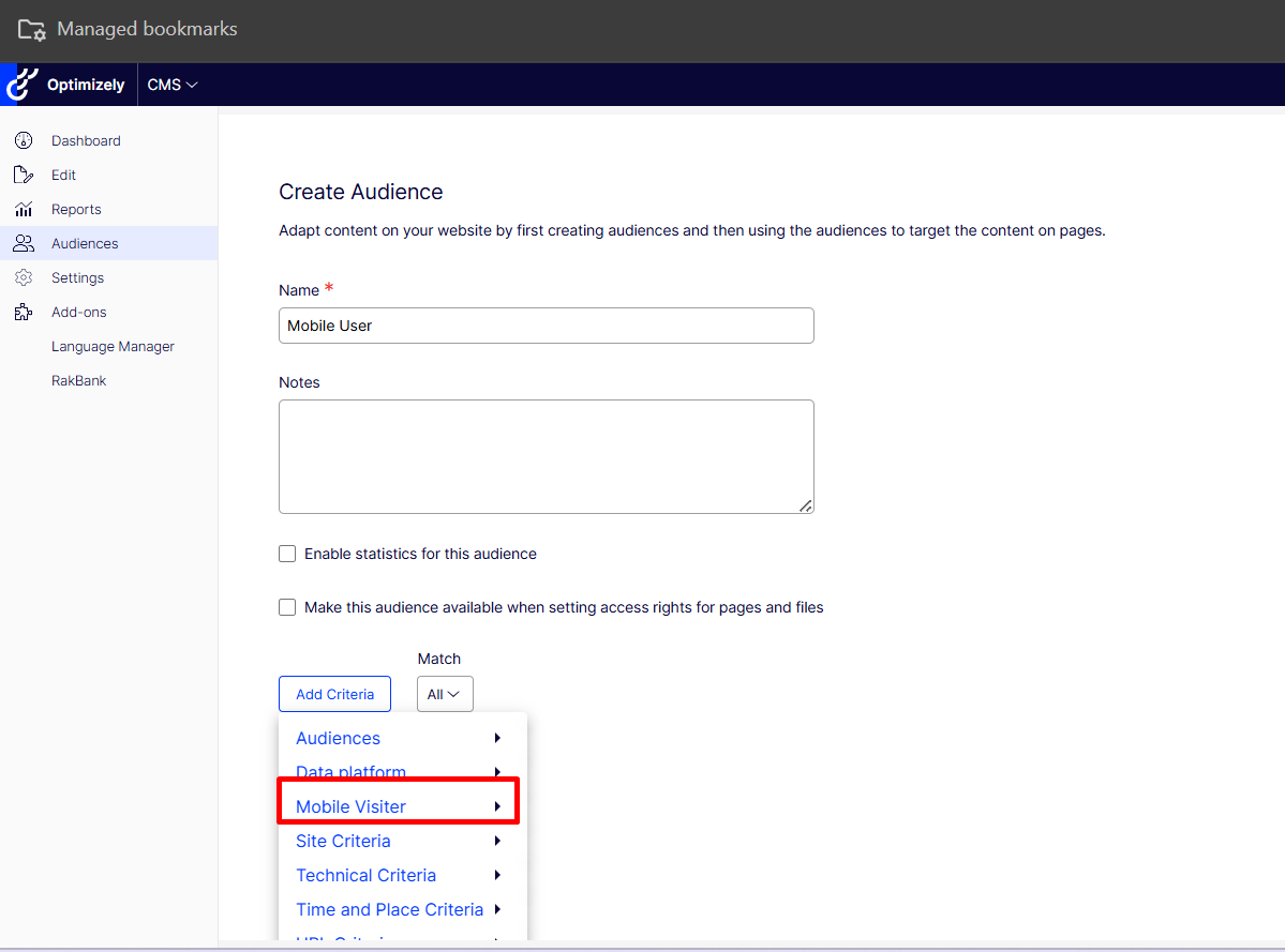 How to Create Custom Audience Criteria for Mobile Visitors in Optimizely CMS