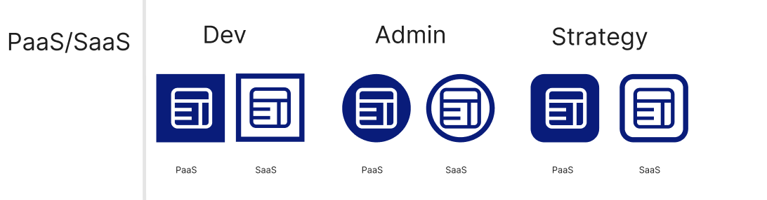 PaaS icons → solid blue fill with a white icon inside