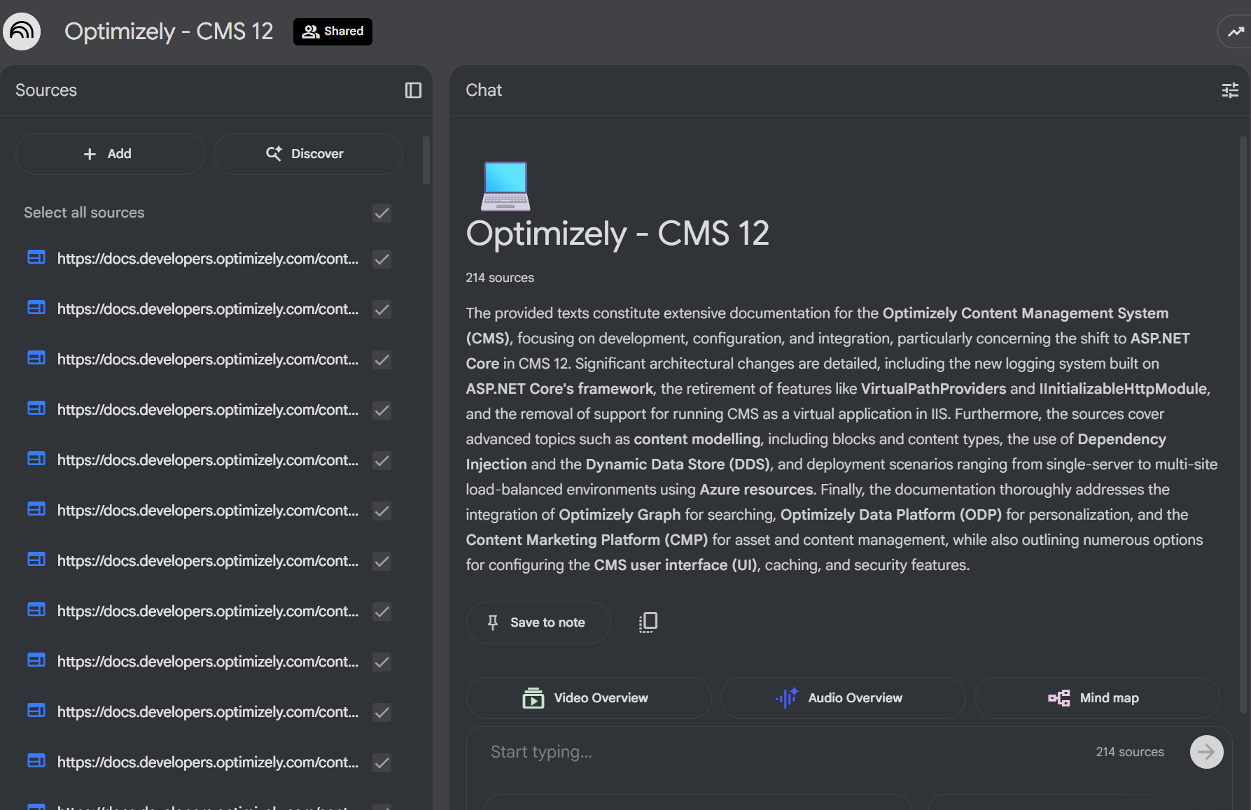 - Import all of Jon Jones Optimizely YouTube videos in to a NotebookLM for querying and exploration