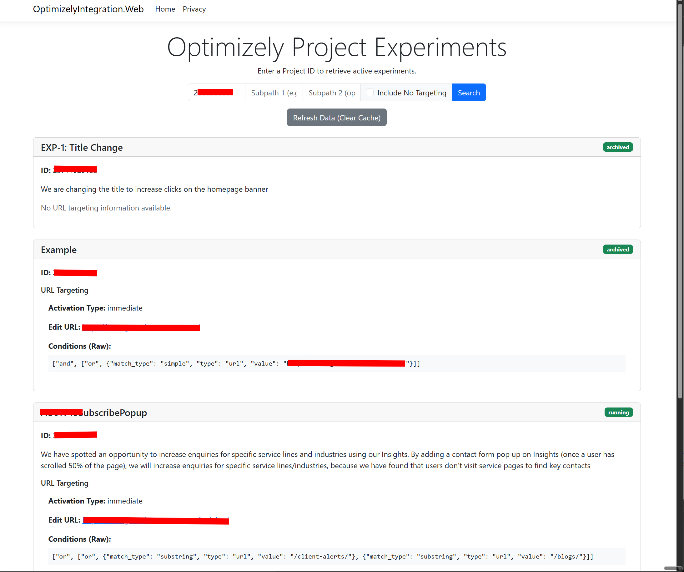 - Return a list of experiments from the web experimentation REST API based upon the past in status flags.